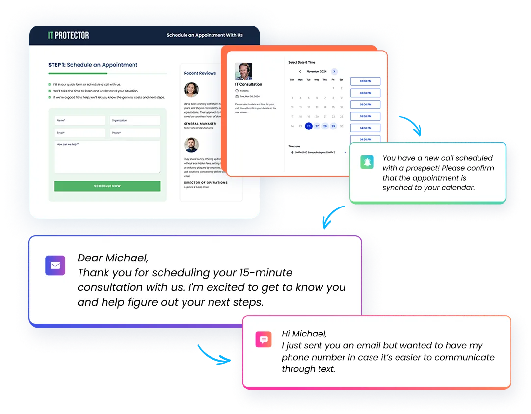 Send personalized emails and texts the moment someone fills out a form or misses a call.